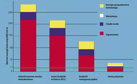 Rysunek 1. Zapotrzebowanie na ciepło dla różnych typów budynków[6]